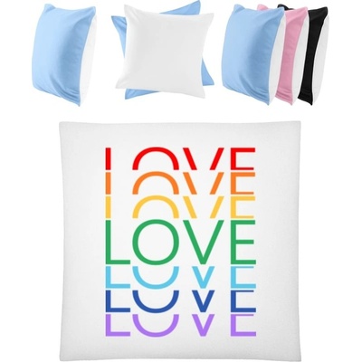 Darčeky PrintEQ Štvorcový Farebný Vankúš Dúhový dizajn Love Love Love Biela/Čierna 40x40Darčeky PrintEQ Štvorcový Farebný Vankúš Dúhový dizajn Love Love Love Biela/Čierna 40x40