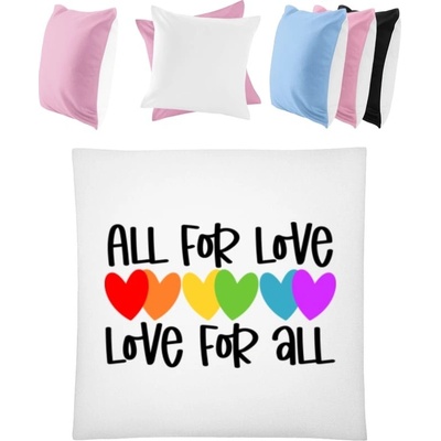 Darčeky PrintEQ Štvorcový Farebný Vankúš Dúhový Nápis All for Love Biela/Čierna 40x40Darčeky PrintEQ Štvorcový Farebný Vankúš Dúhový Nápis All for Love Biela/Čierna 40x40